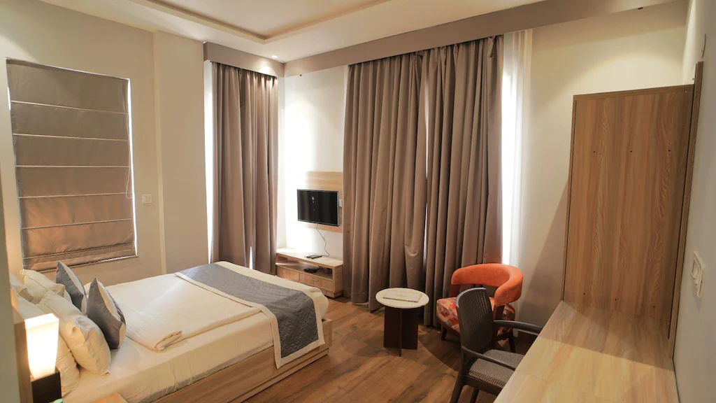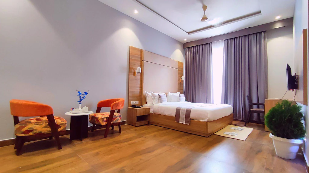 Step into our Premium Room, thoughtfully curated to provide an upgraded experience with spacious interiors, cozy bedding, and essential modern amenities. Perfectly suited for small families or couples, this room type offers a comfortable queen-size/double bed, a private bathroom with standard fittings, and access to essential services like Wi-Fi and in-room entertainment.